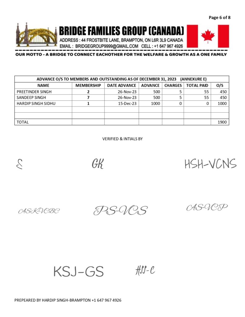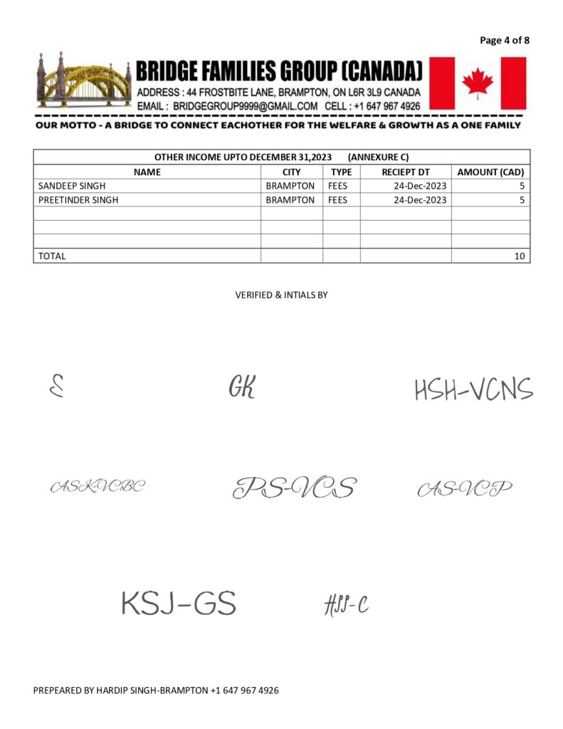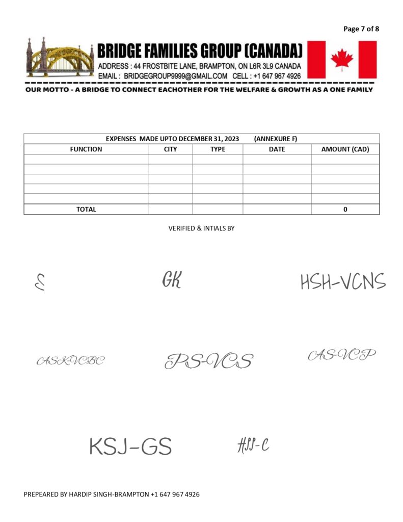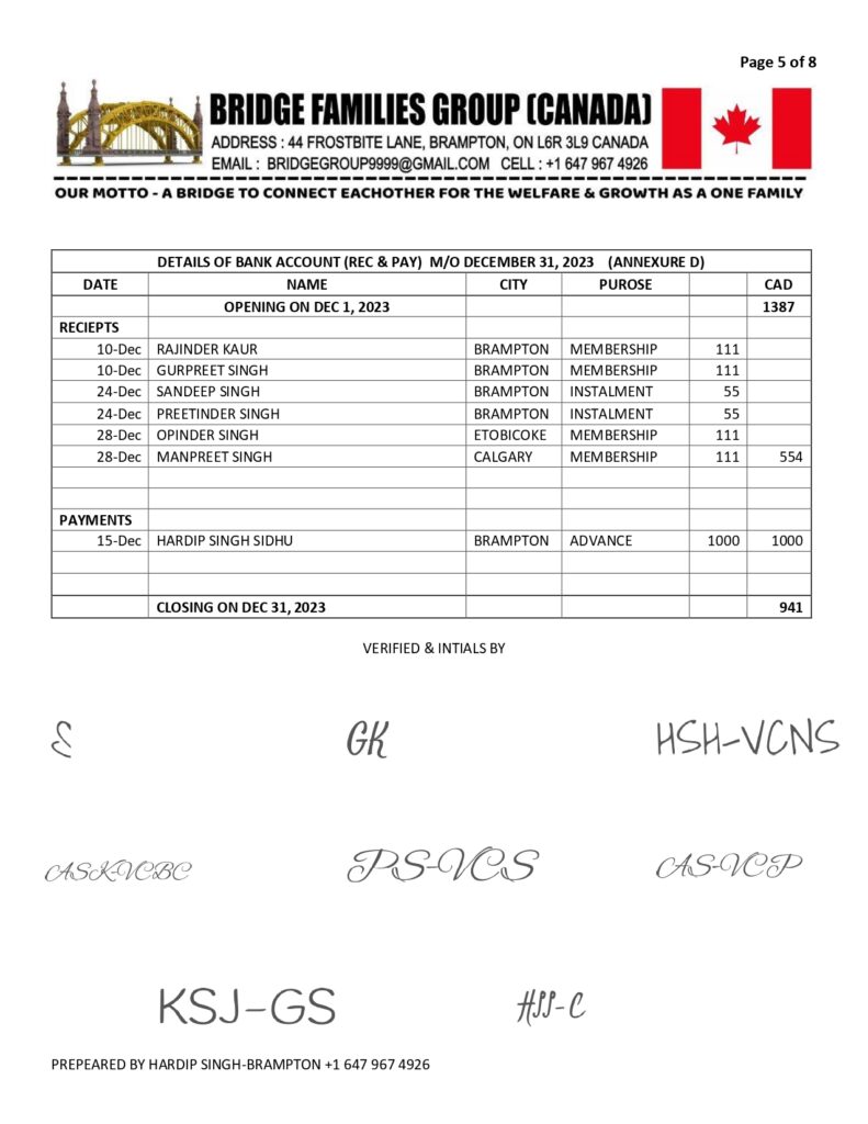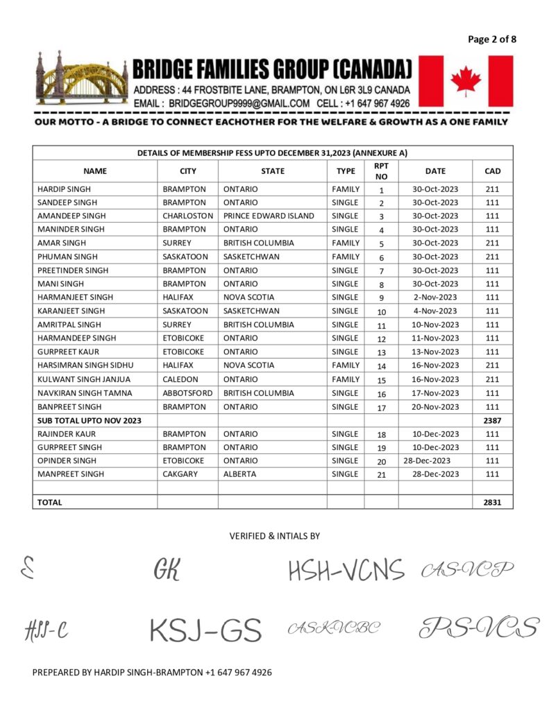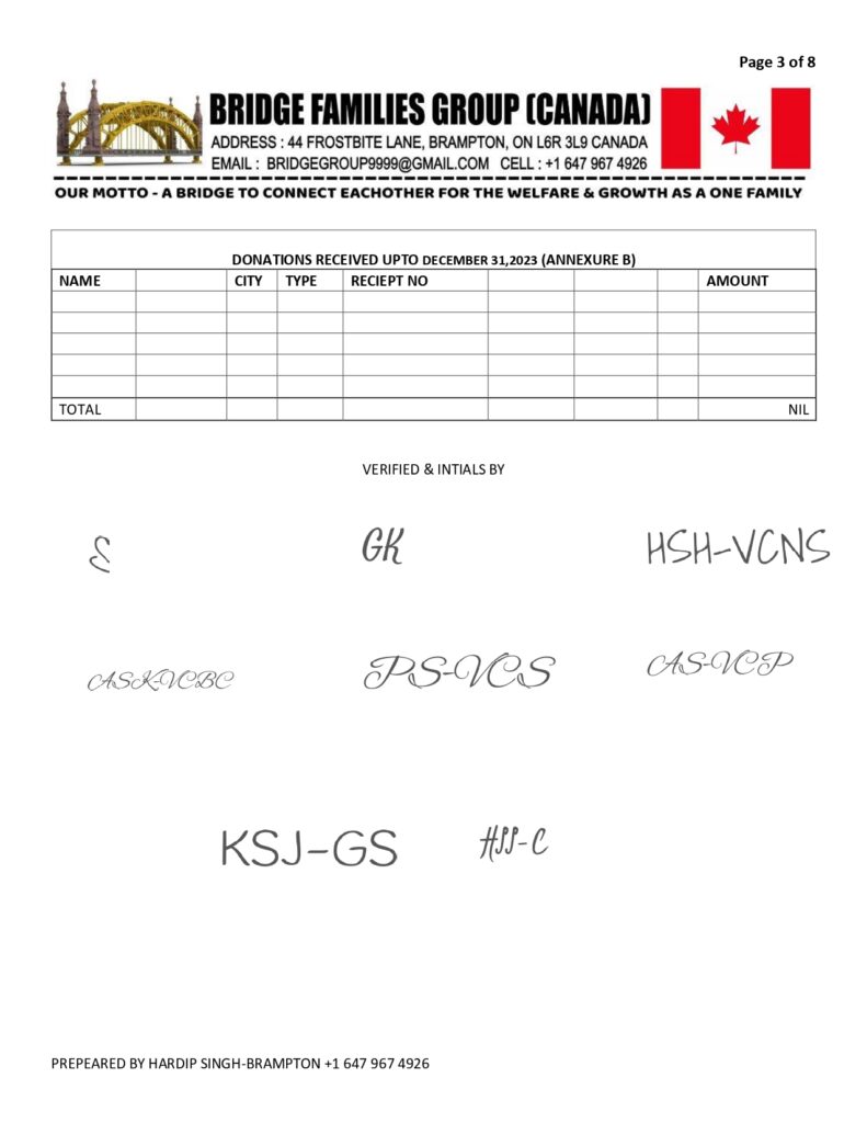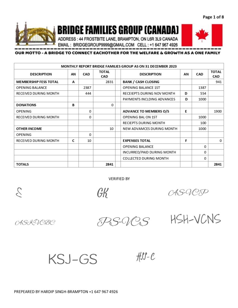 MONTHLY REPORTS OF BRIDGE FAMILIES GROUP CANADA